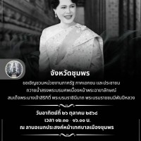 วันที่ 26 ตุลาคม พ.ศ.2568 จังหวัดชุมพร จัดพิธีถวายน้ำสรงพระบรมศพเบื้องหน้าพระฉายาลักษณ์ สมเด็จพระนางเจ้าสิริกิติ์ พระบรมราชินีนาถ พระบรมราชชนนีพันปีหลวง ณ ลานอเนกประสงค์หน้าเทศบาลเมืองชุมพร อำเภอเมืองชุมพร จังหวัดชุมพร