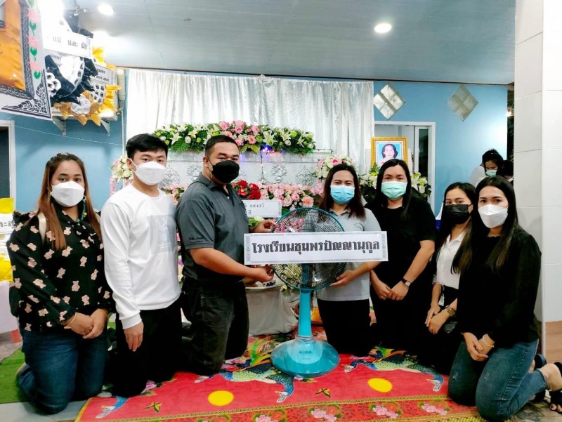 ๑๔ พฤศจิกายน ๒๕๖๔ นายศิลป์ พรมแม้น รองผู้อำนวยการโรงเรียนชุมพรปัญญานุกูล พร้อมคณะ นำพวงหรีดร่วมเคารพศพ แสดงความเสียใจและไว้อาลัยแก่คุณแม่วรรณนิตย์ แสงสวี มารดาของนางสาวณิชาพัชร์ แสงสวี ครูโรงเรียนชุมพรปัญญานุกูล