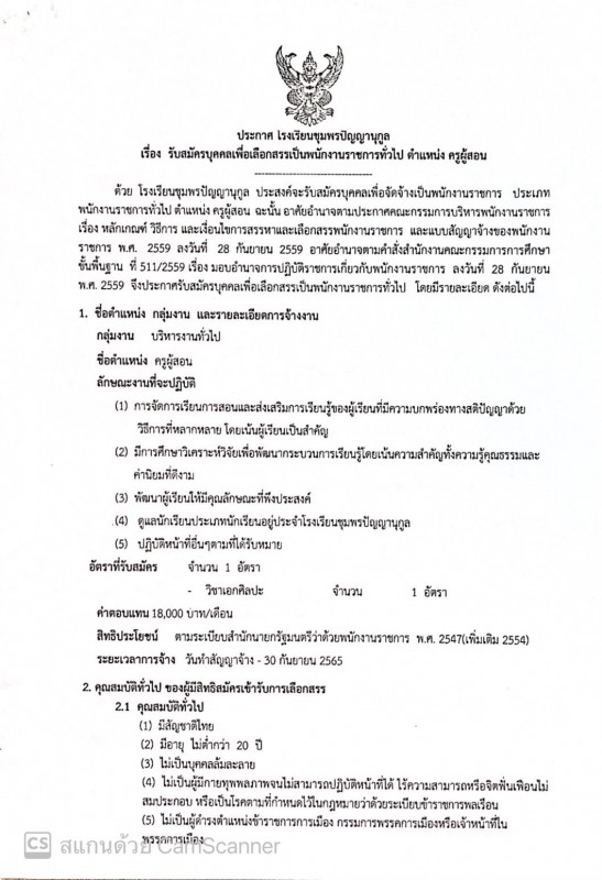 ๒๖ มกราคม ๒๕๖๕ โรงเรียนชุมพรปัญญานุกูล ประกาศรับสมัครพนักงานราชการทั่วไป ตำแหน่งครูผู้สอน จำนวน ๑ อัตรา วิชาเอกศิลปะ รับสมัครตั้งแต่วันที่ ๒๖ มกราคม - ๑ กุมภาพันธ์ ๒๕๖๕ สามารถสอบถามเพิ่มเติมได้ที่ ๐๗๗๖๒๒๗๘๔ และสามารถโหลดใบสมัครได้ที่ลิงค์ด้านล่าง