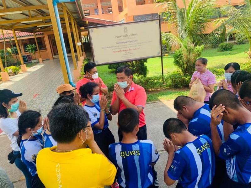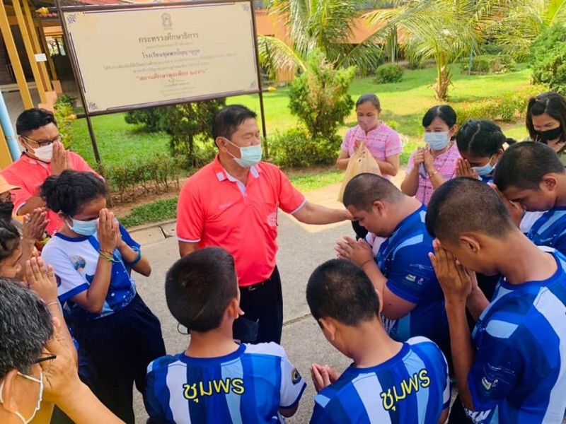 วันอังคารที่ ๑ กุมภาพันธ์ ๒๕๖๕ นายนพรัตน์ มะโนอิ่ม ผู้อำนวยการโรงเรียนชุมพรปัญญานุกูล ให้โอวาทนักกีฬาเป็นตัวแทนโรงเรียนในการแข่งขันกีฬาแห่งชาติคนพิการแห่งชาติ ครั้งที่ ๓๗ คัดเลือกภาค ๔ "ระนองเกมส์" ระหว่างวันที่ ๑-๕ กุมภาพันธ์ ๒๕๖๕