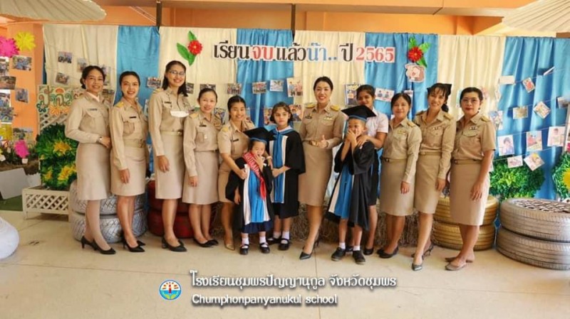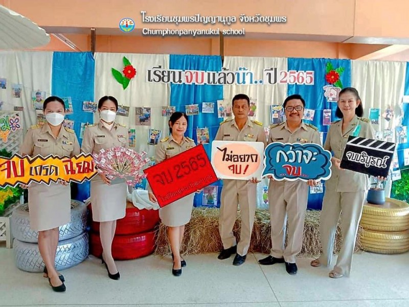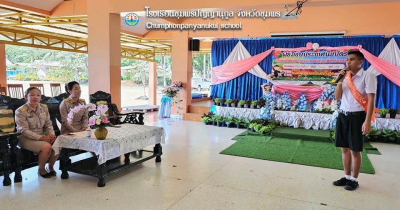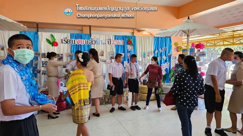 ๑๗ มีนาคม ๒๕๖๖ นางฐิติมณฑ์ ฐิติไวฑูรย์ ผู้อำนวยการโรงเรียนชุมพรปัญญานุกูล พร้อมด้วยคณะรองผู้อำนวยการ คณะครู บุคลากร และนักเรียน ดำเนินกิจกรรมปัจฉิมนิเทศและบัณฑิตน้อยนักเรียนที่สำเร็จการศึกษาขั้นพื้นฐาน ประจำปีการศึกษา ๒๕๖๕ ณ ใต้อาคารเฉลิมพระเกี
