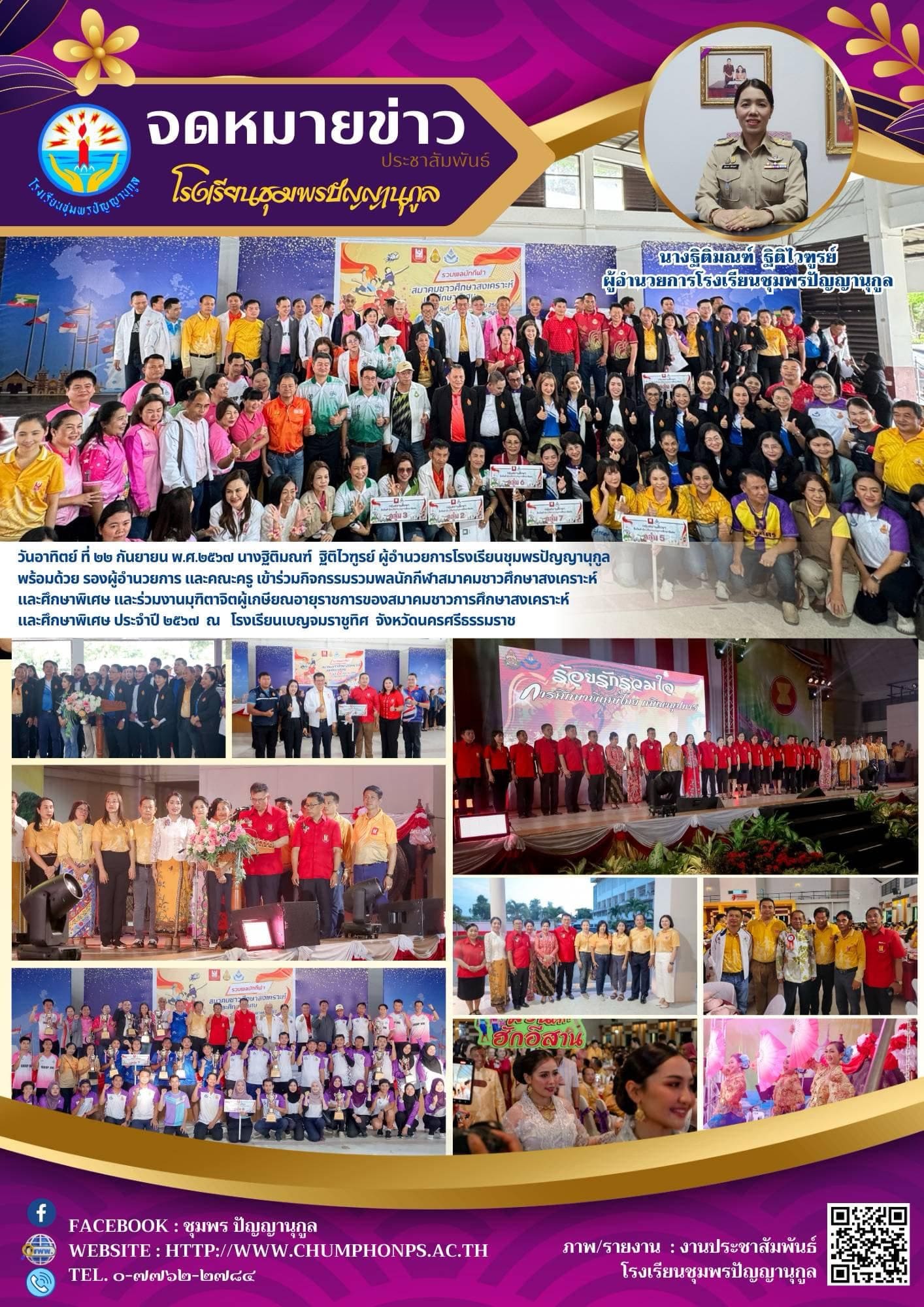 วันที่ ๒๒ ก.ย.๖๗ นางฐิติมณฑ์ ฐิติไวฑูรย์ ผู้อำนวยการโรงเรียน พร้อมด้วย รองผู้อำนวยการ และคณะครู เข้าร่วมกิจกรรมรวมพลนักกีฬาสมาคมชาวศึกษาสงเคราะห์และศึกษาพิเศษ และร่วมงานมุฑิตาจิตผู้เกษียณอายุราชการ ประจำปี ๒๕๖๗ ณ โรงเรียนเบญจมราชูทิศ จังหวัดนครศรีธรรมราช