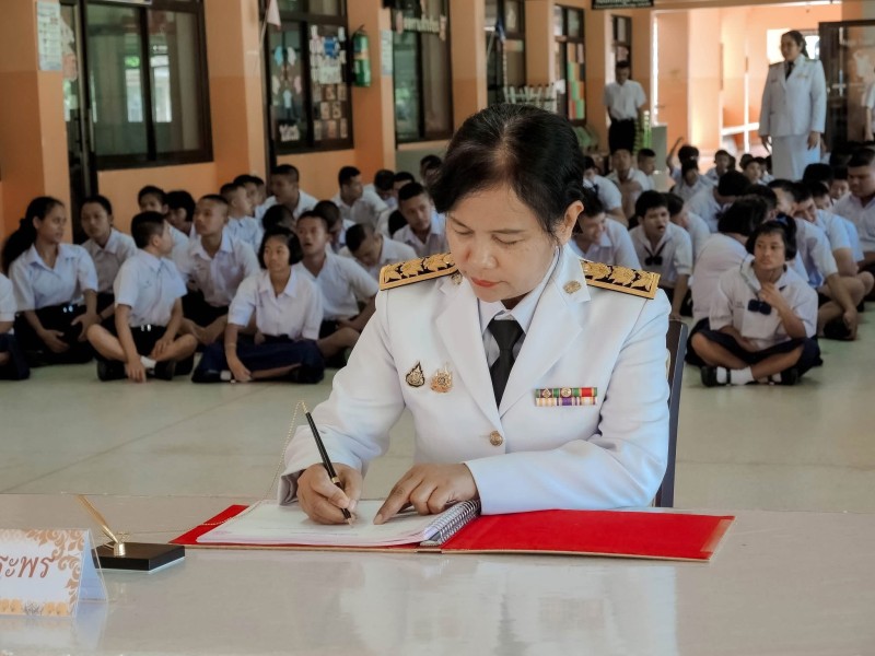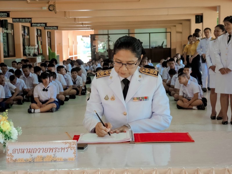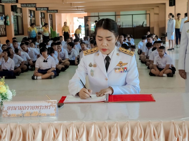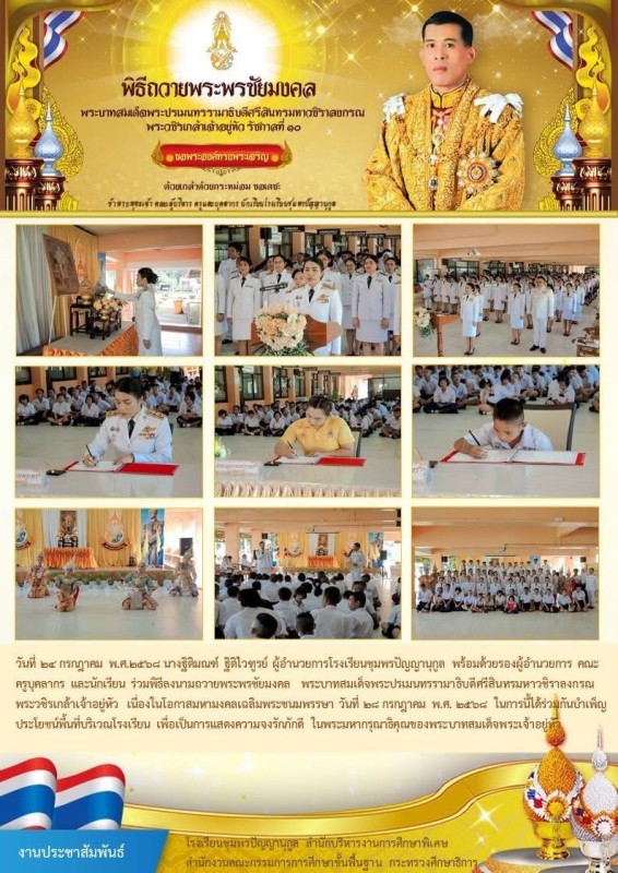 วันพุธ ที่ 24 กรกฎาคม 2568 นางฐิติมณฑ์ ฐิติไวฑูรย์ ผู้อำนวยการโรงเรียนชุมพรปัญญานุกูล นำคณะข้าราชการครู บุคลากรทางการศึกษา นักเรียน และผู้ปกครองโรงเรียนชุมพรปัญญานุกูลถวายสัตย์ปฏิญาณเพื่อเป็นข้าราชการที่ดีและพลังของแผ่นดิน และร่วมลงนามถวายพระพร พระบาทสมเด็จพระปรเมนทรรามาธิบดีศรีสินทร มหาวชิราลงกรณ พระวชิรเกล้าเจ้าอยู่หัว ในหลวงรัชกาลที่10 เนื่องในโอกาสวันเฉลิม พระชนมพรรษา วันที่ 28 กรกฎาคม 2568 เพื่อน้อมสำนึกในพระมหากรุณาธิคุณของพระองค์ที่ทรงห่วงใยและตระหนักถึงการพัฒนาคุณภาพชีวิต ความอยู่ดีมีสุขของพสกนิกรชาวไทยทุกหมู่เหล่า อีกทั้งคณะครู และนักเรียนร่วมทำกิจกรรมจิตอาสา “เราทำความดี ด้วยหัวใจ”
