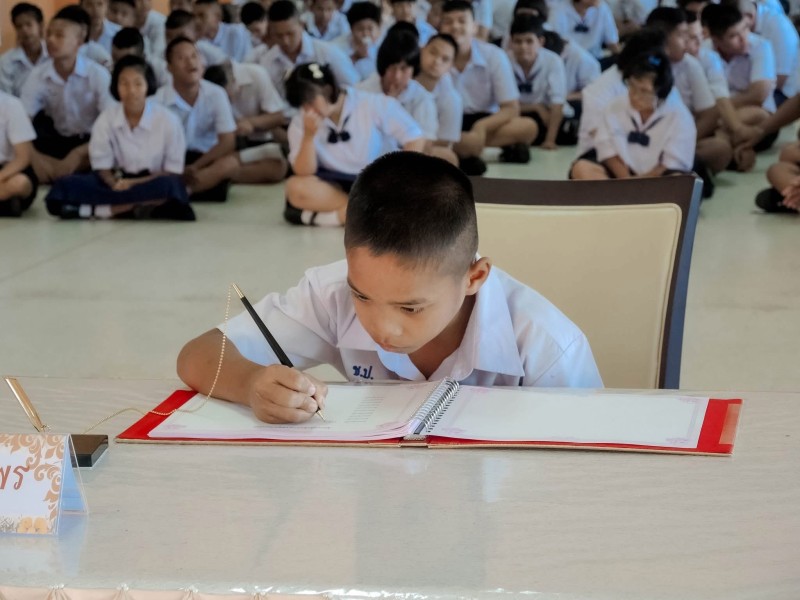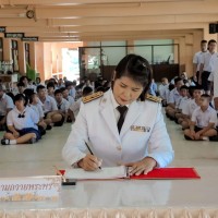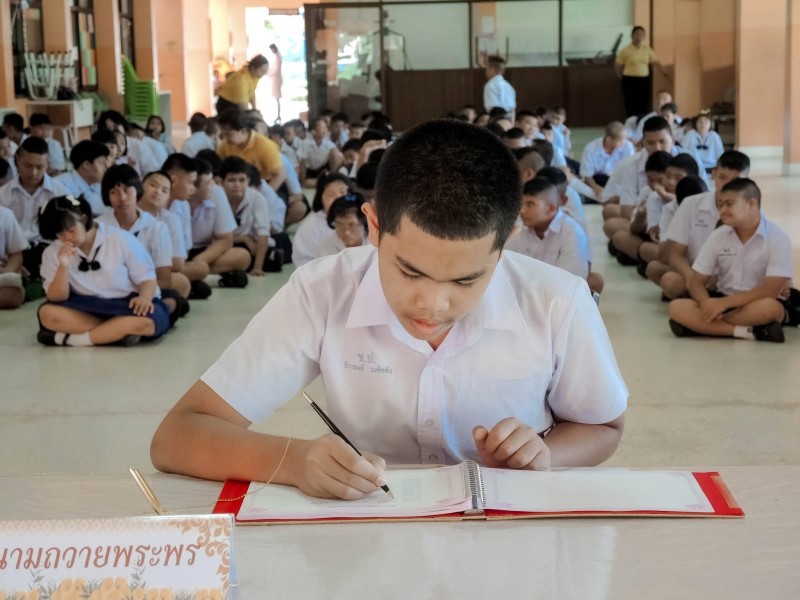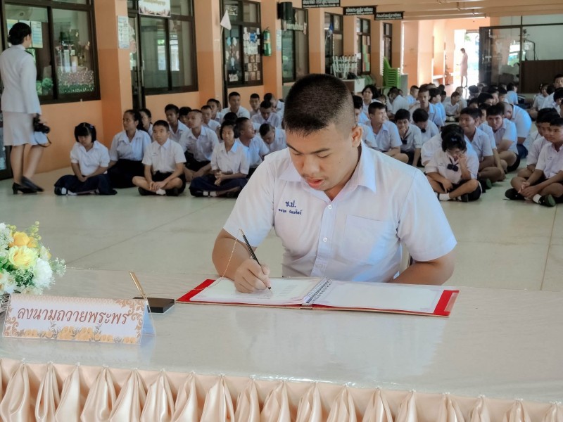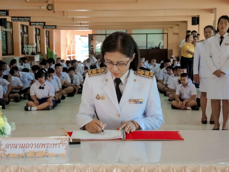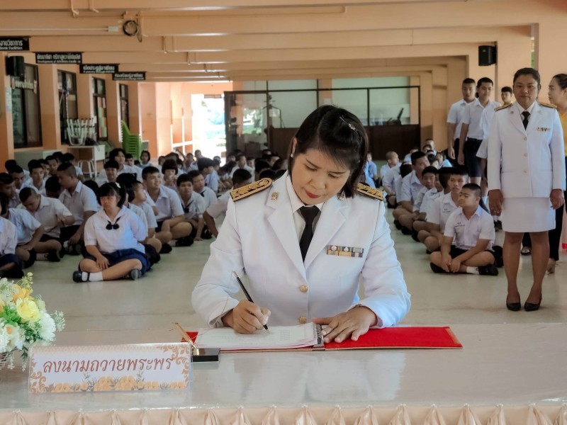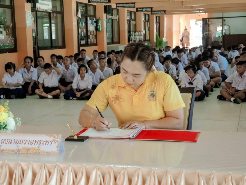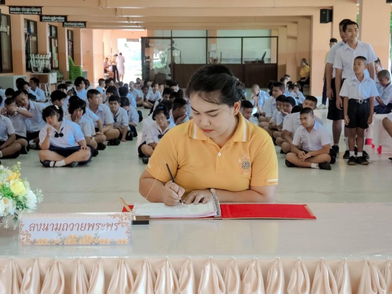 วันพุธ ที่ 24 กรกฎาคม 2568 นางฐิติมณฑ์ ฐิติไวฑูรย์  ผู้อำนวยการโรงเรียนชุมพรปัญญานุกูล นำคณะข้าราชการครู บุคลากรทางการศึกษา นักเรียน และผู้ปกครองโรงเรียนชุมพรปัญญานุกูลถวายสัตย์ปฏิญาณเพื่อเป็นข้าราชการที่ดีและพลังของแผ่นดิน และร่วมลงนามถวายพระพร พระบาทสมเด็จพระปรเมนทรรามาธิบดีศรีสินทร มหาวชิราลงกรณ พระวชิรเกล้าเจ้าอยู่หัว ในหลวงรัชกาลที่10 เนื่องในโอกาสวันเฉลิม พระชนมพรรษา วันที่ 28 กรกฎาคม 2568  เพื่อน้อมสำนึกในพระมหากรุณาธิคุณของพระองค์ที่ทรงห่วงใยและตระหนักถึงการพัฒนาคุณภาพชีวิต ความอยู่ดีมีสุขของพสกนิกรชาวไทยทุกหมู่เหล่า อีกทั้งคณะครู และนักเรียนร่วมทำกิจกรรมจิตอาสา “เราทำความดี ด้วยหัวใจ”