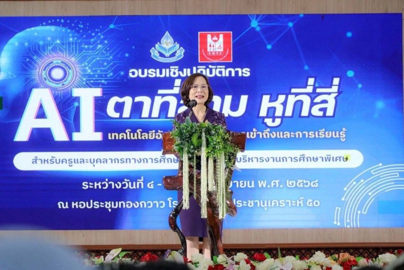 เทคโนโลยีอัจฉริยะ – พลังการเข้าถึงและการเรียนรู้” ณ หอประชุมทองกวาว โรงเรียนราชประชานุเคราะห์ 50 จังหวัดขอนแก่น พิธีเปิดได้รับเกียรติจาก นางวรรณภา ไชยเรือน ผู้อำนวยการสำนักบริหารงานการศึกษาพิเศษ เป็นประธานในพิธี โดยมี นางพัทยา ชนะพันธ์ หัวหน้าฝ่ายวิชาการและกิจกรรม สำนักบริหารงานการศึกษาพิเศษ เป็นผู้กล่าวรายงาน การประชุมดังกล่าวจัดขึ้นเพื่อเสริมสร้างความรู้ ความเข้าใจ และการประยุกต์ใช้เทคโนโลยีปัญญาประดิษฐ์ (AI) และนวัตกรรมดิจิทัล ในการจัดการเรียนการสอนสำหรับการศึกษาพิเศษ โดยมี ผศ.ดร.นิวัฒน์ ศรีสวัสดิ์ อาจารย์ประจำคณะศึกษาศาสตร์ มหาวิทยาลัยขอนแก่น นายกสมาคมการศึกษาดิจิทัลและวิศวะกรรมการเรียนรู้ เป็นวิทยากรถ่ายทอดองค์ความรู้ ผ่านการบรรยายและ Workshop ฝึกปฏิบัติจริง ภายใต้แนวคิด “รู้จัก – ทดลอง – ออกแบบการใช้งาน AI ผ่านโจทย์สถานการณ์จริง” การจัดงานครั้งนี้ได้รับความร่วมมือจากผู้บริหาร ครู และบุคลากรทางการศึกษาในสังกัดเป็นจำนวนมาก ถือเป็นก้าวสำคัญในการยกระดับคุณภาพการศึกษา และเพิ่มศักยภาพครูผู้สอนด้านการประยุกต์ใช้ AI เพื่อพัฒนาการเรียนรู้ของนักเรียนที่มีความต้องการพิเศษอย่างมีประสิทธิภาพ |