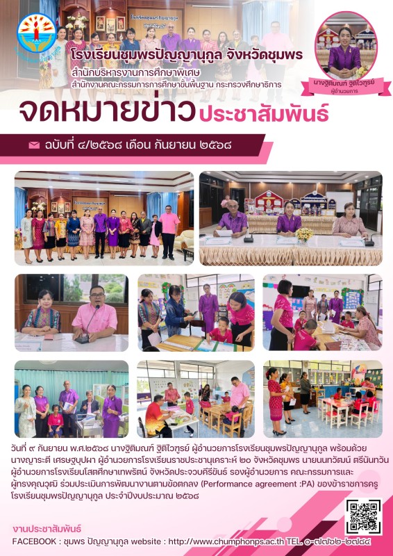 9ก.ย.68 นางฐิติมณฑ์ ฐิติไวฑูรย์ ผู้อำนวยการโรงเรียนชุมพรปัญญานุกูลพร้อมด้วยนางญาระตี เศรษฐบุปผา ผู้อำนวยการโรงเรียนราชประชานุเคราะห์ ๒๐ นายนนทวัฒน์ ตรีนันทวัน ผู้อำนวยการโรงเรียนโสตฯเทพรัตน์ จังหวัดประจวบคีรีขันธ์ รองผู้อำนวยการ คณะกรรมการและผู้ทรงคุณวุฒิ