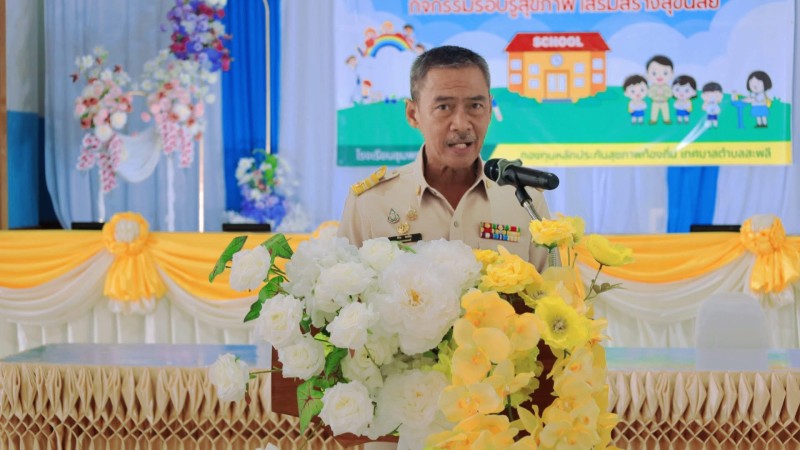 วันที่ 15 กันยายน 2568 นางฐิติมณฑ์ ฐิติไวฑูรย์ ผู้อำนวยการโรงเรียนชุมพรปัญญานุกูล กล่าวรายงานการดำเนินงานโครงการเสริมสร้างสุขภาพเด็กวัยเรียน "กิจกรรมรอบรู้สุขภาพ เสริมสร้างสุขนิสัย ปีการศึกษา 2568" พร้อมด้วย คณะผู้บริหาร คณะครู และนักเรียนแกนนำ