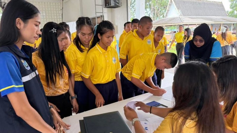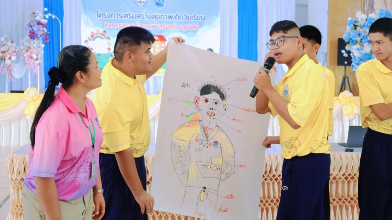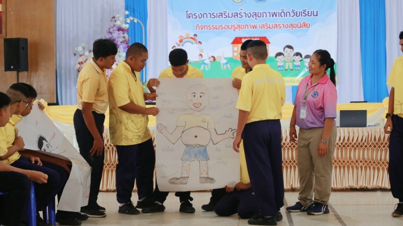 วันที่ 15 กันยายน 2568 นางฐิติมณฑ์ ฐิติไวฑูรย์ ผู้อำนวยการโรงเรียนชุมพรปัญญานุกูล กล่าวรายงานการดำเนินงานโครงการเสริมสร้างสุขภาพเด็กวัยเรียน "กิจกรรมรอบรู้สุขภาพ เสริมสร้างสุขนิสัย ปีการศึกษา 2568" พร้อมด้วย คณะผู้บริหาร คณะครู และนักเรียนแกนนำ