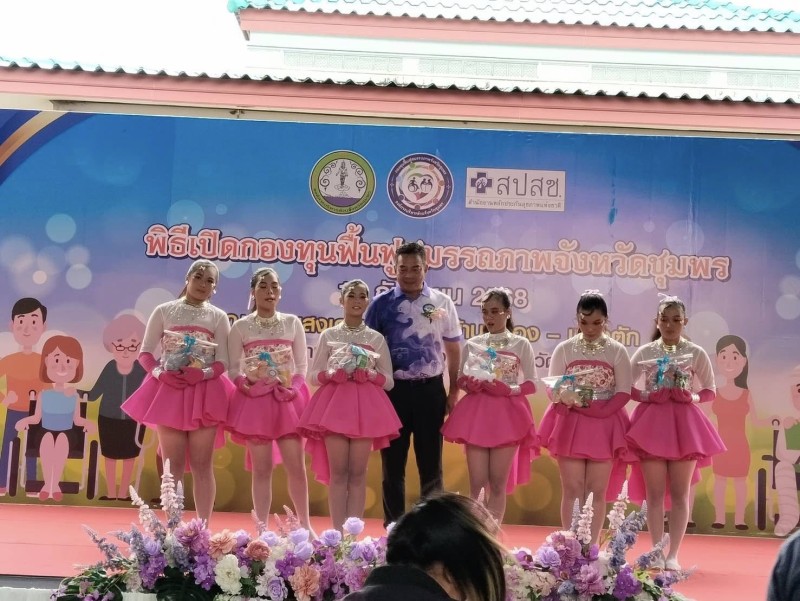 และคุณครูจันทร์จิรา พงศ์พานิช เข้าร่วมพิธีเปิดกองทุนฟื้นฟูสมรรถภาพจังหวัดชุมพร ณ สถานสงเคราะห์คนชราบ้านอู่ทอง-พนังตัก ตำบลนาชะอัง อำเภอเมือง จังหวัดชุมพร |