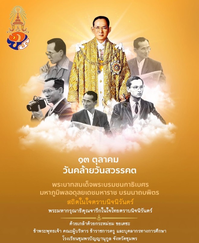 ๑๓ ตุลาคม วันคล้ายวันสวรรคต พระบาทสมเด็จพระบรมชนกาธิเบศรมหาภูมิพลอดุลยเดชมหาราช บรมนาถบพิตร ขอน้อมรำลึกในพระมหากรุณาธิคุณอันหาที่สุดมิได้ด้วยเกล้าด้วยกระหม่อม ขอเดชะ