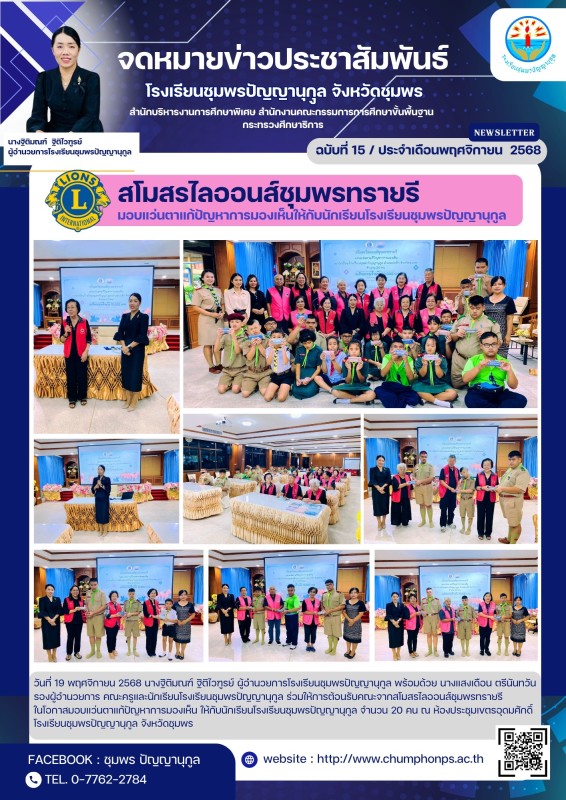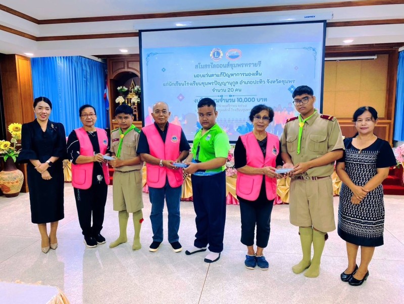 ในโอกาสมอบแว่นตาแก้ปัญหาการมองเห็น ให้กับนักเรียนโรงเรียนชุมพรปัญญานุกูล จำนวน 20 คน ณ ห้องประชุมเขตรอุดมศักดิ์ โรงเรียนชุมพรปัญญานุกูล จังหวัดชุมพร |