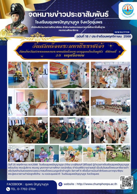วันที่ 25 พฤศจิกายน พ.ศ. 2568 โรงเรียนชุมพรปัญญานุกูล นำโดย นางฐิติมณฑ์ ฐิติไวฑูรย์ ผู้อำนวยการโรงเรียนชุมพรปัญญานุกูล พร้อมด้วยคณะผู้บริหาร คณะครู บุคลากรทางการศึกษา และนักเรียน