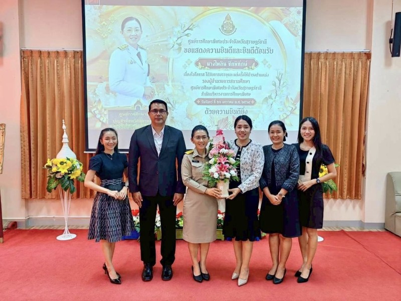 ร่วมแสดงความยินดีกับ "นางไพลิน ชิตพิทักษ์" เนื่องในโอกาสได้รับการบรรจุแต่งตั้งให้ดำรงตำแหน่ง รองผู้อำนวยการสถานศึกษา ศูนย์การศึกษาพิเศษ ประจำจังหวัดสุราษฎร์ธานี ณ ศูนย์การศึกษาพิเศษ ประจำจังหวัดสุราษฎร์ธานี |
